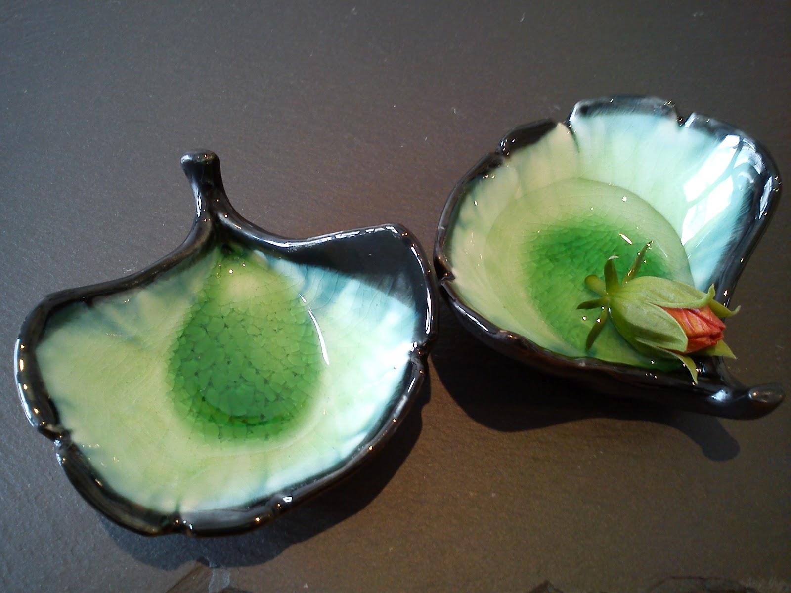Die passen farblich ganz hervorragend zu meinen Reisschalen und dem Blattschälchen.